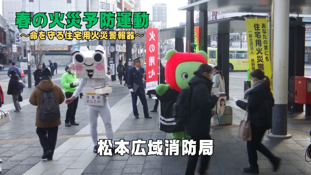 松本広域消防局では、長野県・長野県消防設備協会と連携し、春の火災予防運動にあわせて「火災予防街頭キャンペーン」を行います。当日は、長野県PRキャラクター「アルクマ」も来場します。